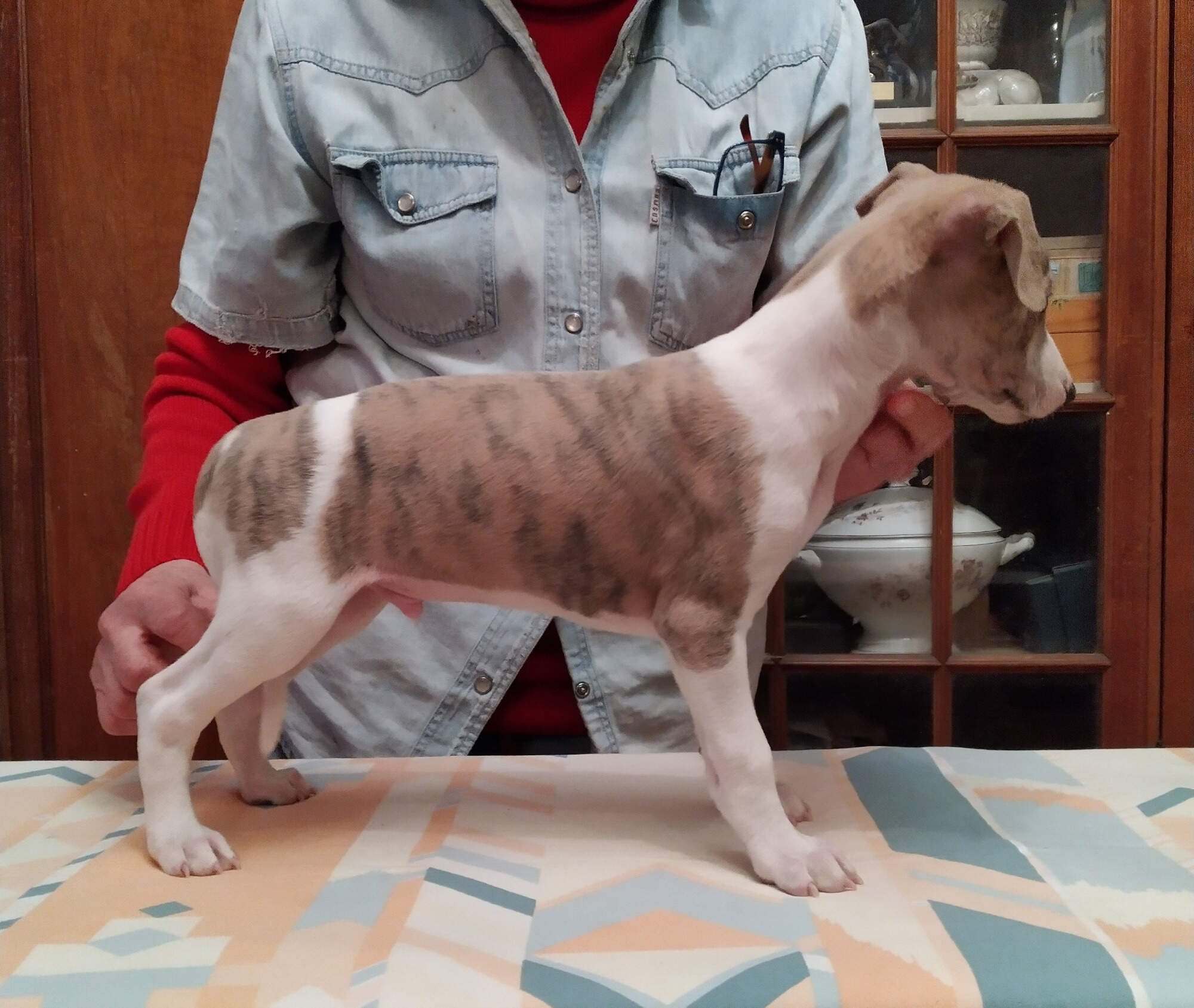 Po zrušené rezervaci nabízíme pejska ze zahraničního krytí "pro krásu a výkon" v atraktivním zbarvení - bílá s modrožíhaným pláštěm. Oba rodiče jsou prověřeni ve výstavních kruzích i coursingu s vynikajícími výsledky a tituly. Otec účastník mistrovství světa v coursingu 2025. U pejska očekáváme výborný exteriér, pracovní vlohy, výbornou povahu a zdraví. Zaručujeme skvělou socializaci a odborný chovatelský servis. Pejsek je zvyklý na děti i domácí zvířata. Do batůžku dostane bohatou výbavu